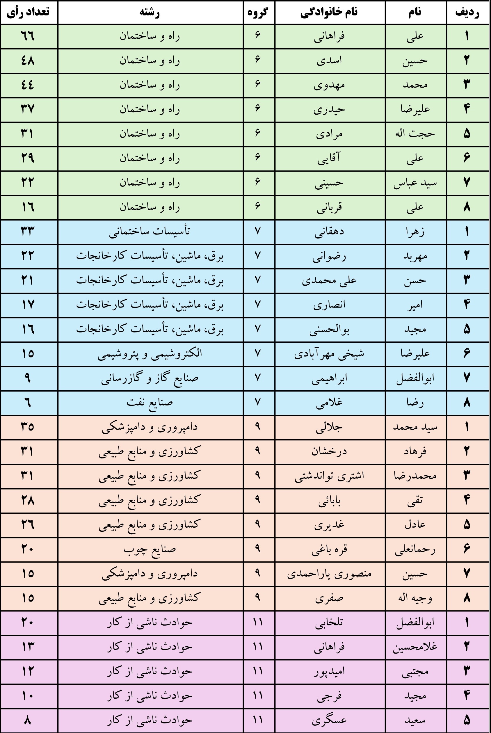 اسامی داوطلبین عضویت درهیأت رئیسه گروههای ۶، ۷، ۹ و ۱۱