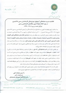 توسط سايت شوراي عالي كارشناسان رسمي دادگستري، نتيجه آزمون اعلام شد. براي مشاهده متن واضحتر اطلاعيه جناب آقاي ساعي (مدير هماهنگي آزمونهاي شورايعالي) روي تصوير زير كليك كنيد: