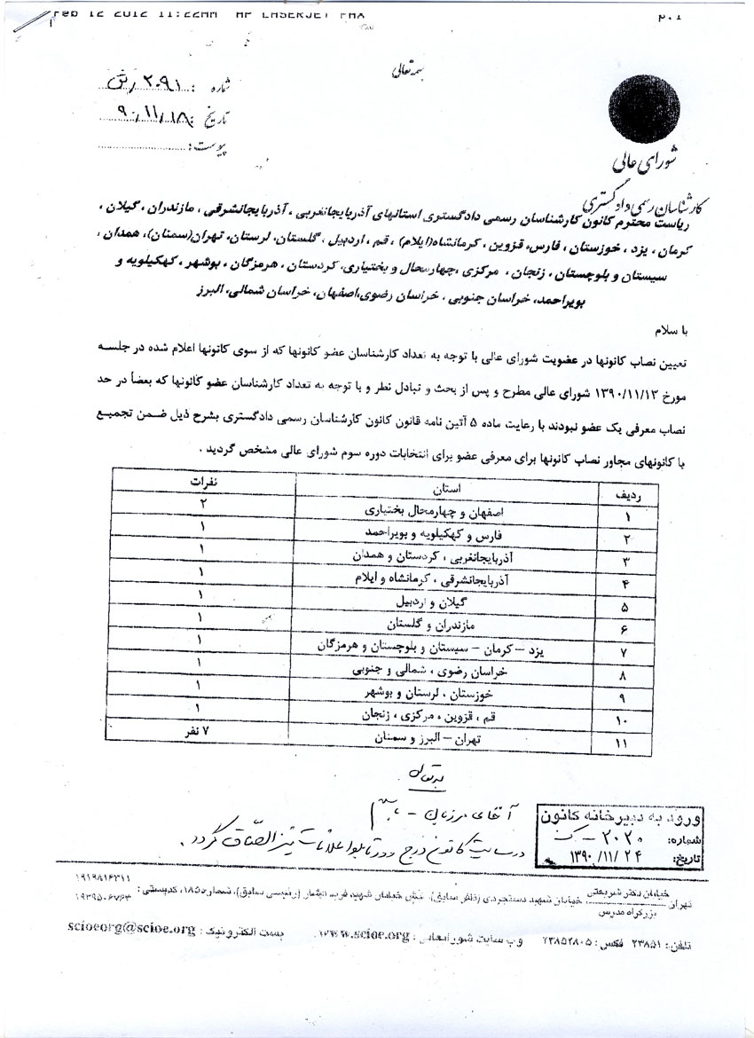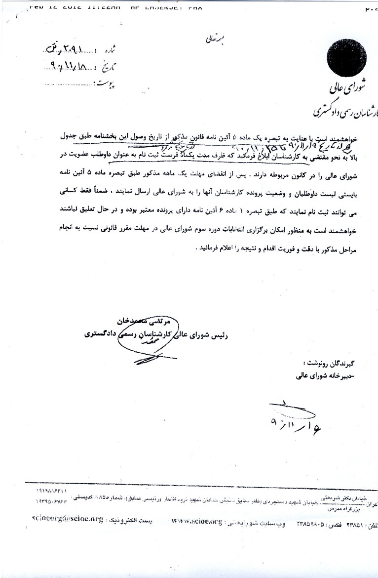 کارشناسانی که تمایل دارند جهت کاندیداتوری در دوره سوم انتخابات شورايعالی شرکت نمایند، متن نامه واصله از شورايعالي را كه عينا در ادامه منتشر شده، ملاحظه فرمايند. براي مشاهده تصاوير در اندازه بزرگتر، روي آنها كليك كنيد: