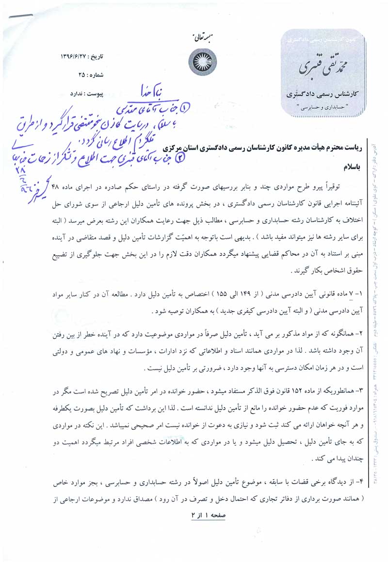 گزارش اجرای ماده 48 در بخش پرونده های تامین دلیل رشته حسابداری