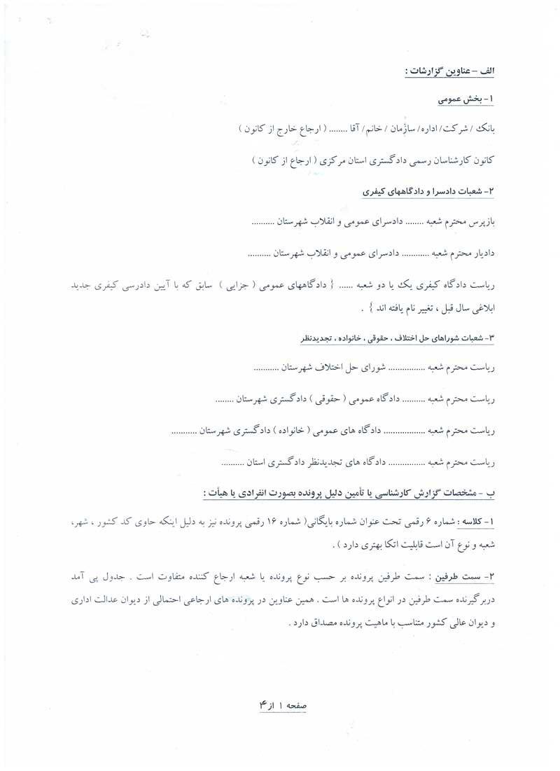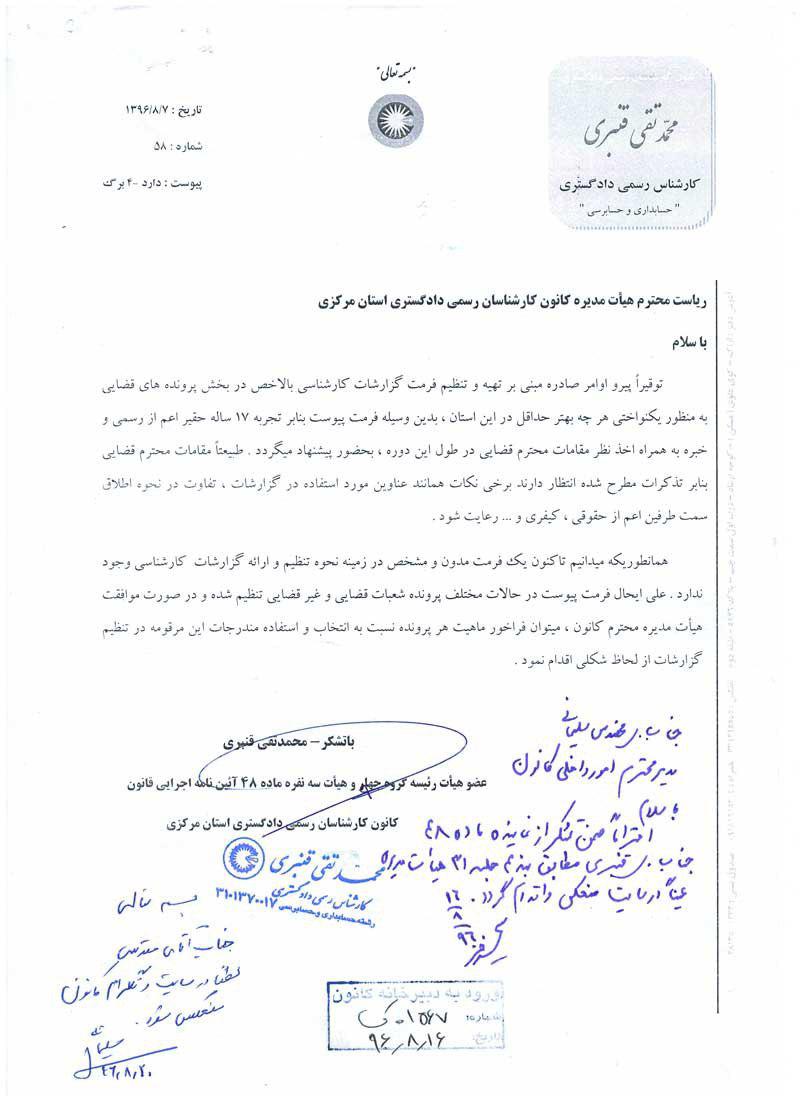 فرمت جدید پیشنهادی ارائه ی گزارشات کارشناسی، در استان مرکزی