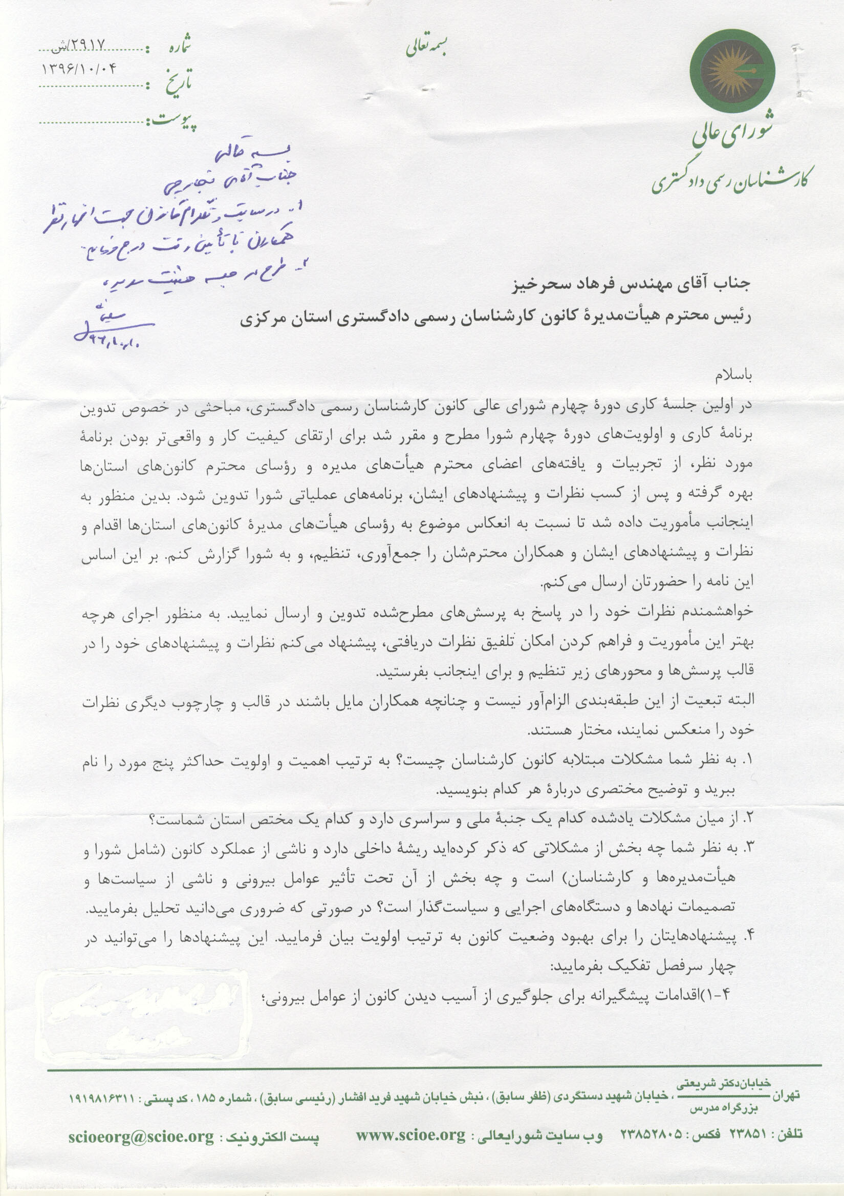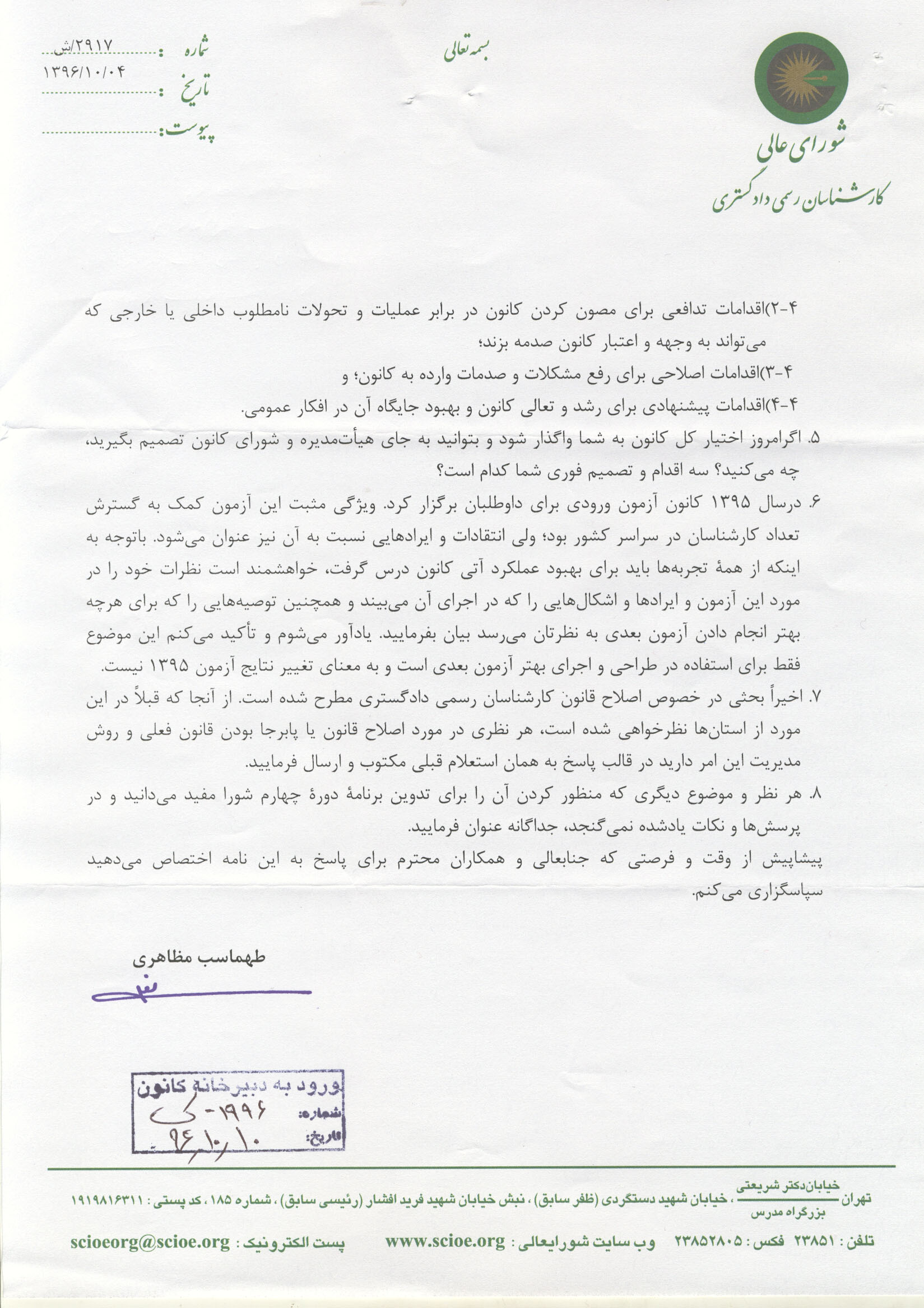 ضمناً تصویر نامه ی ارسالی شورای عالی کانون کارشناسان رسمی دادگستری که مجهز به لینک می باشد،در ذیل قرار دارد: