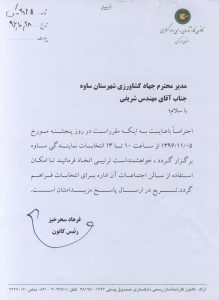 تصویر نامه ارسالی به نماینده و ناظرین که مجهز به لینک می باشد در ذیل قرار دارد .