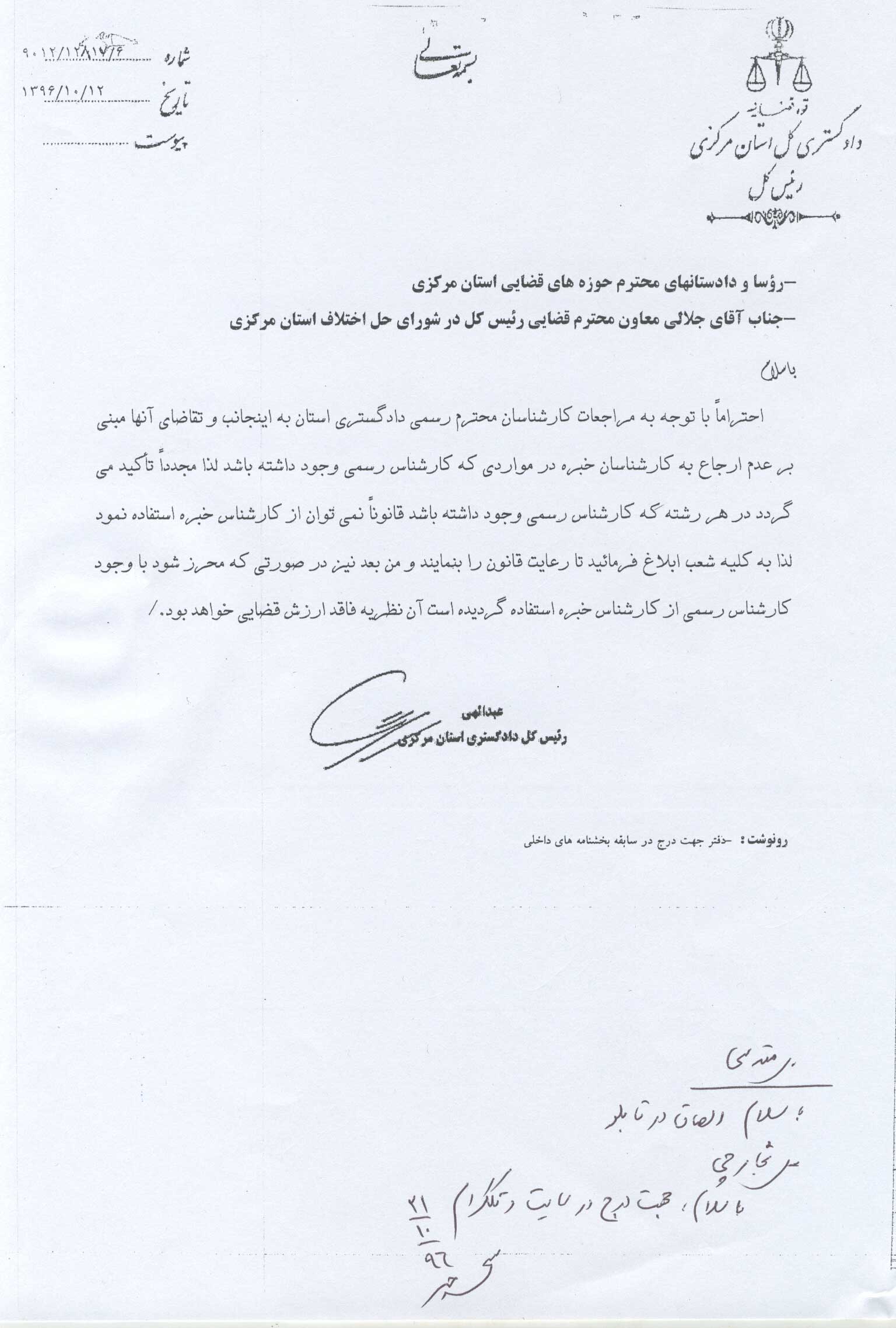 بنابر بخشنامه رئیس کل محترم دادگستری استان مرکزی و تقاضای کارشناسان رسمی دادگستری ،