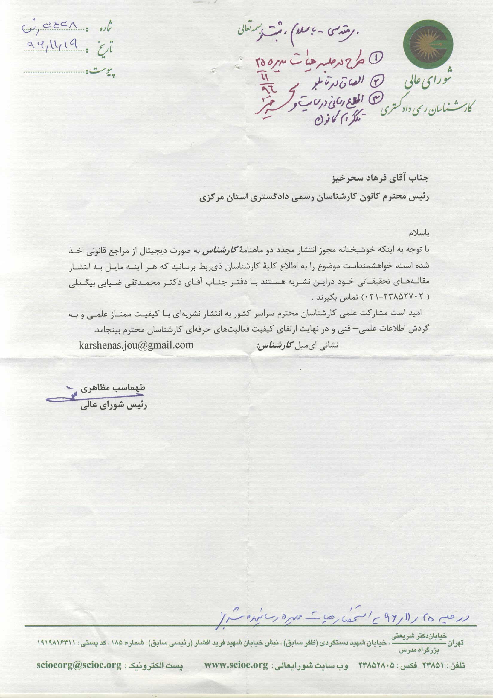 تصویر نامه ارسالی از شورای عالی کارشناسان که مجهز به لینک می باشد در ذیل قرار دارد :