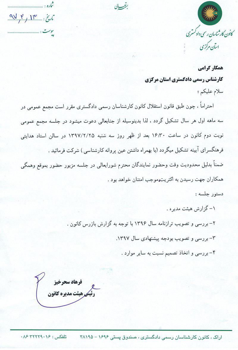 اطلاعیه برگزاری مجمع عمومی سالیانه کانون جهت اطلاع کارشناسان عضو در ذیل منتشر گردیده و با کلیک قابل مشاهده میباشد.