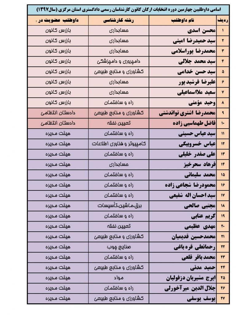لیست کارشناسان به تفکیک رشته