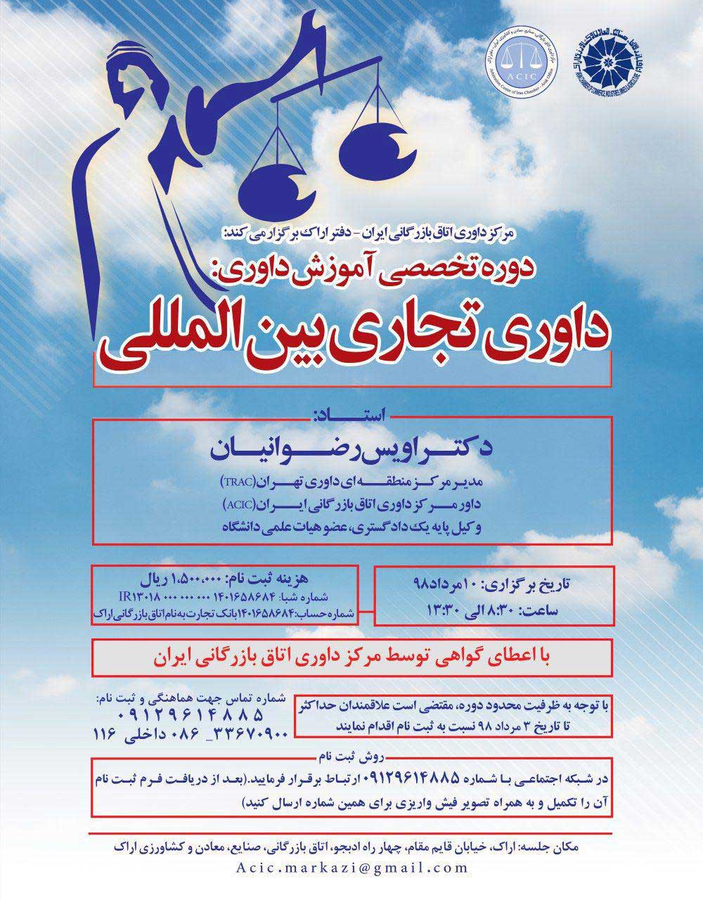 دوره تخصصی آموزش داوری تجاری بین المللی (اتاق بازرگانی – دفتر اراک)