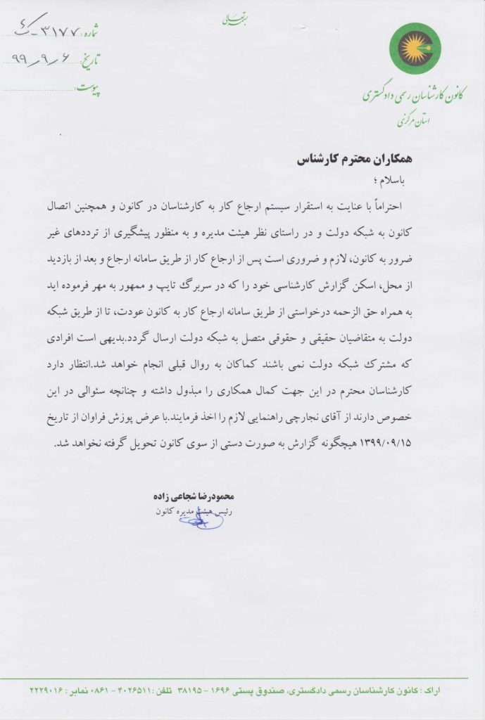 لینک سامانه: سامانه مدیریت ارجاع کار کانون کارشناسان رسمی دادگستری استان مرکزی