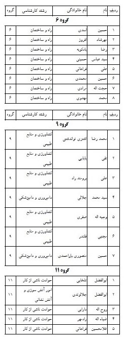 اسامی کاندیدای گروه های مشمول انتخابات هیئت رئیسه گروه های (6-9-11) به شرح ذیل و به ترتیب حروف الفبا در اولویت قرار گرفته اند.