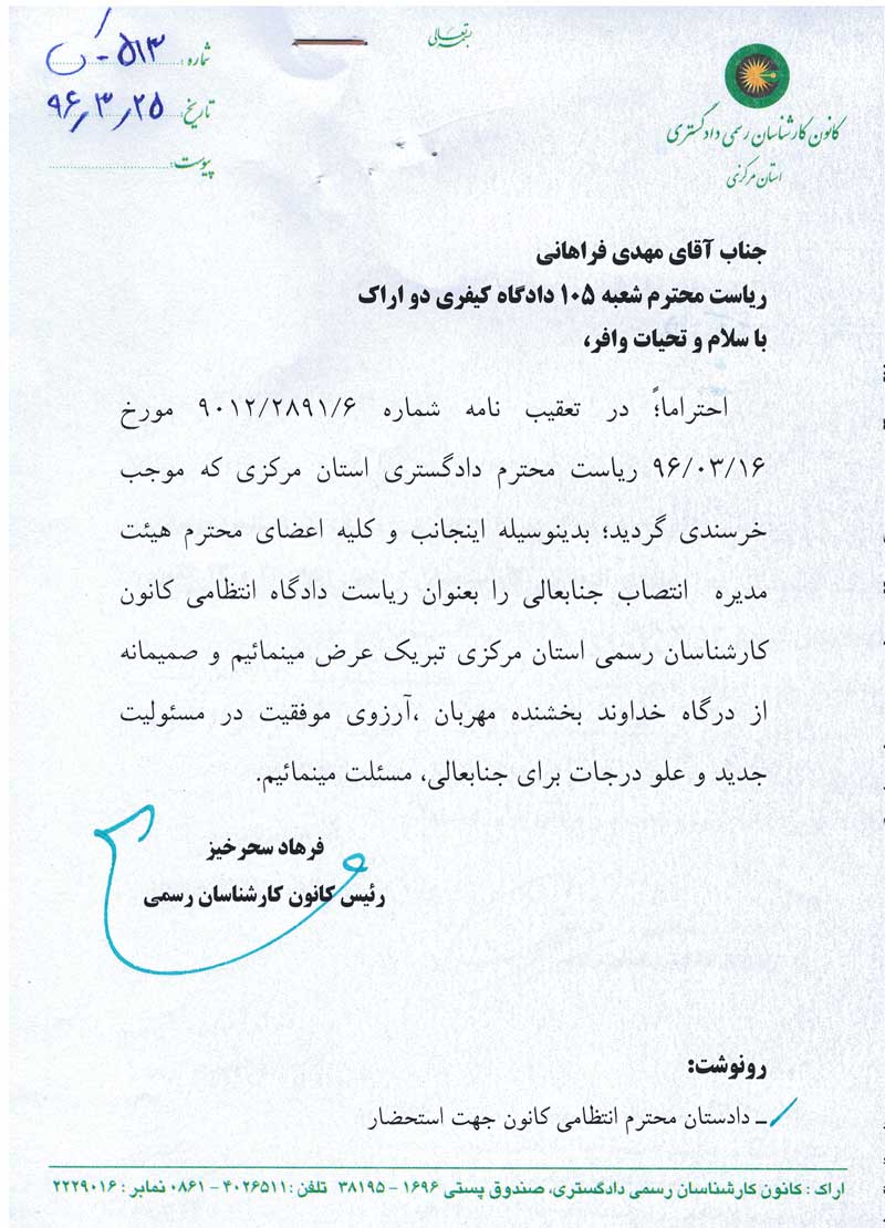 احتراماً بدینوسیله درگذشت وابسته گرامی را تسلیت عرض نموده از درگاه باریتعالی برای آن مرحوم غفران و برای بازماندگان صبر جزیل مسئلت مینماییم.